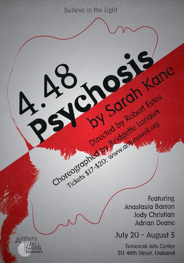 4.48 PSYCHOSIS by Sarah Kane. Starring Anastasia Barron, Jody Christian, and Adrian Deane. Directed by Robert Estes. Choreographed by Bridgette Loriaux. July 20-August 5, 2018. Temescal Arts Center.
