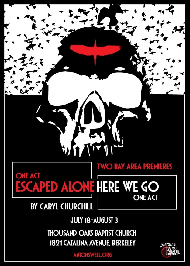ESCAPED ALONE and HERE WE GO by Caryl Churchill. Bay Area Premieres. With a cast of Eighteen Actors. Directed by Robert Estes. July 18-August 3, 2019. Thousand Oaks Baptist Church. 1821 Catalina Avenue, Berkeley.