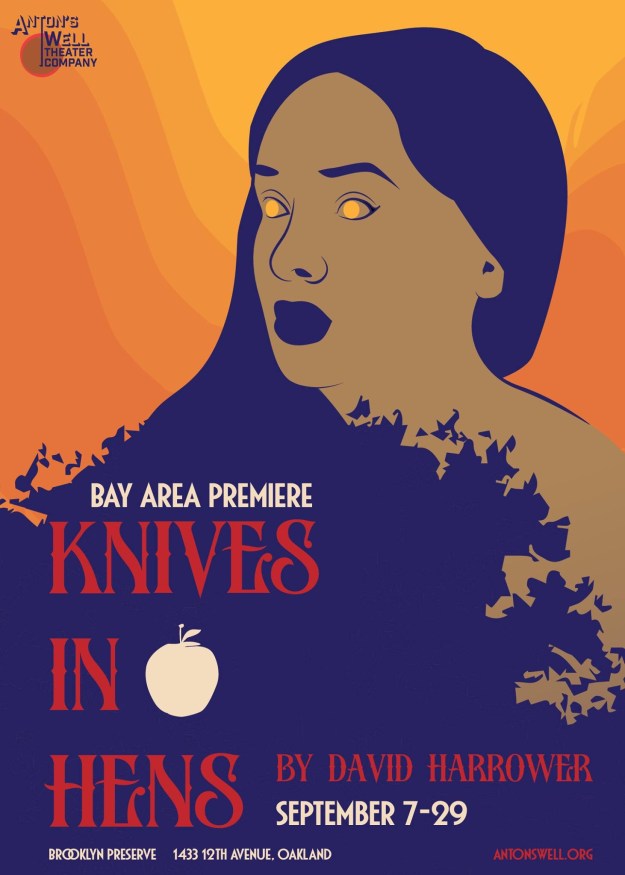 KNIVES IN HENS by David Harrower. Bay Area Premiere. Starring Virginia Blanco, Tony Ortega, and Marco Aponte. September 7-29, 2019. Brooklyn Preserve, 1433 12th Avenue, Oakland.